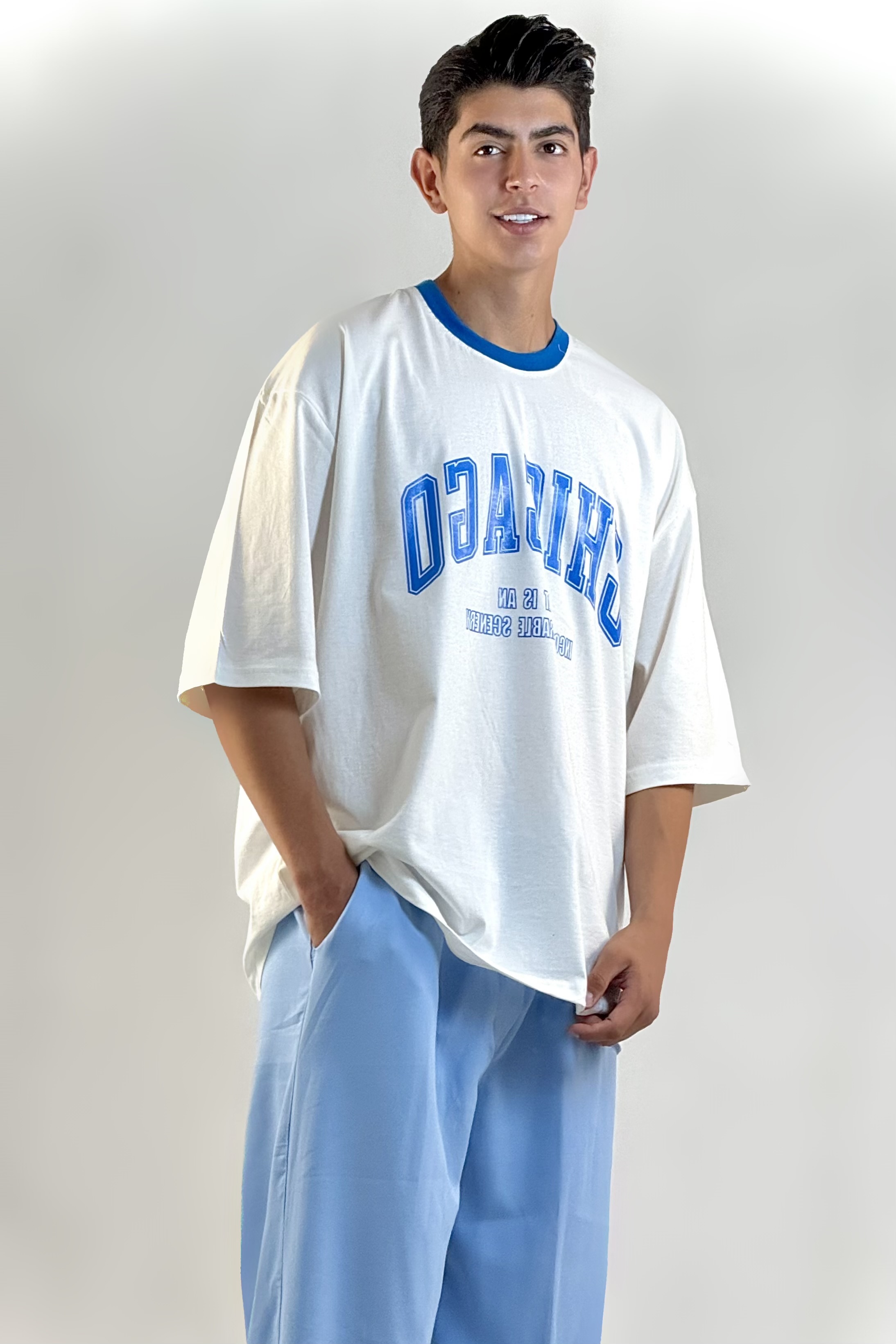 ست تیشرت شلوار بگ استایل رنگ ابی اسمانی